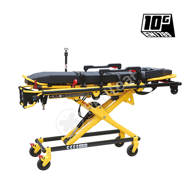 2. 担架长度可调节,适合在狭窄的空间及升降电梯,长度调节机构采用伸缩式机构;